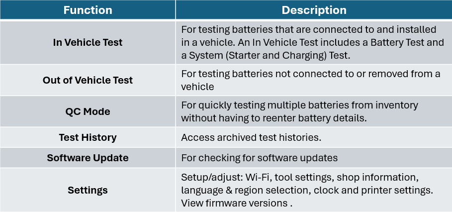 Main Menu Contents Main MenuMain Menu Icons Main MenuMain Menu Icons Updated on April 16, 2026 Related Articles Hardware Configurations and Part Numbers Testing Abilities Results MVT Introduction Controls and Connections Initial Setup