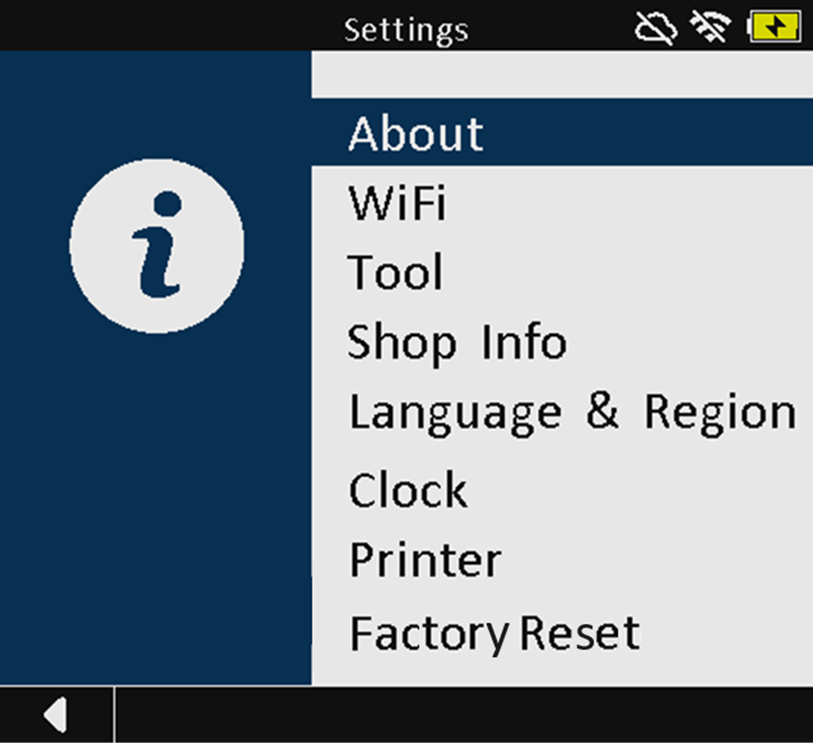 - Factory Reset – Resets tool back to original factory settings, erases all data and test records